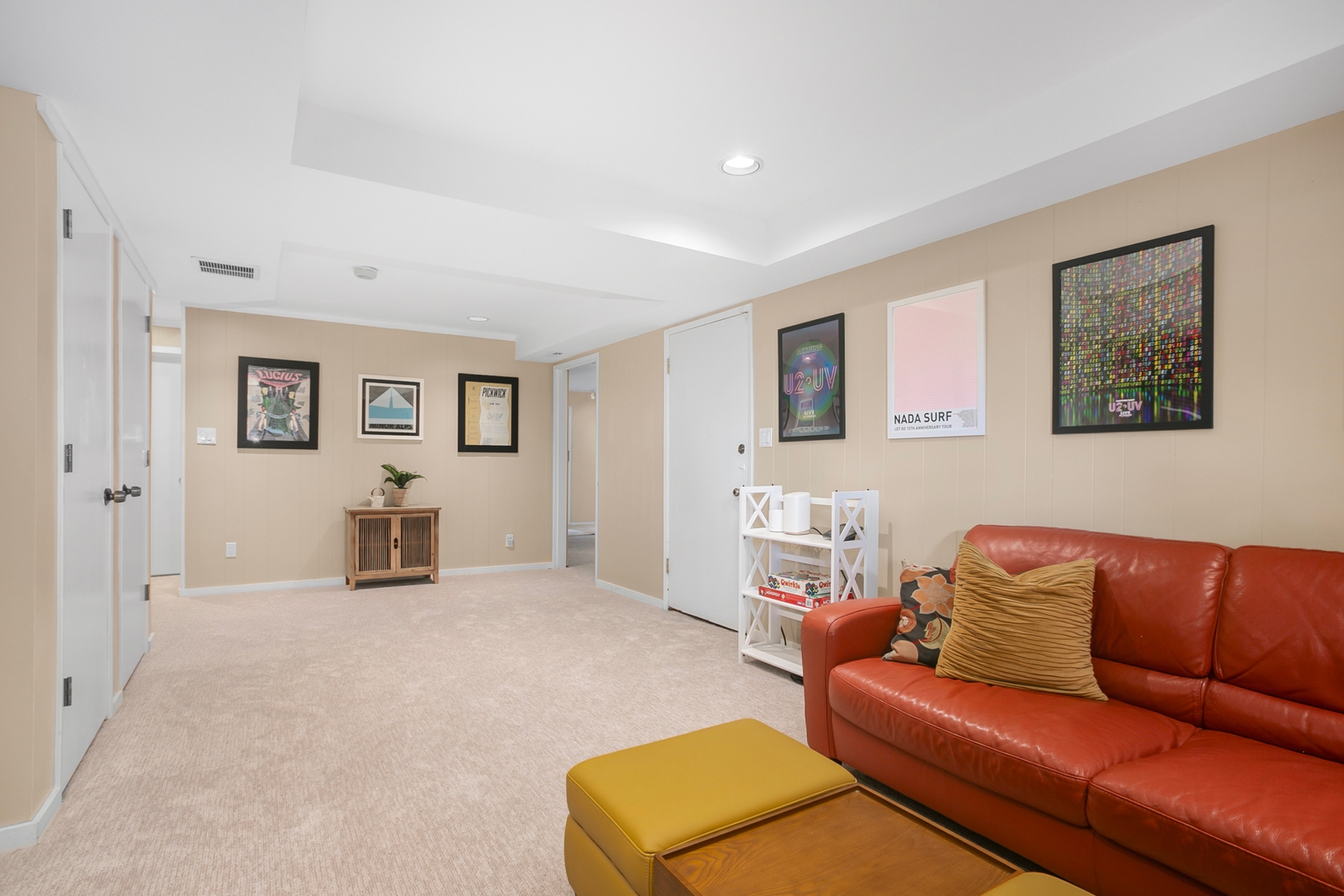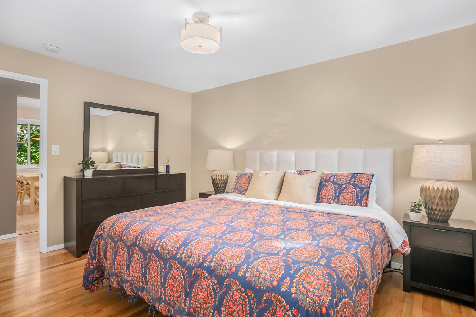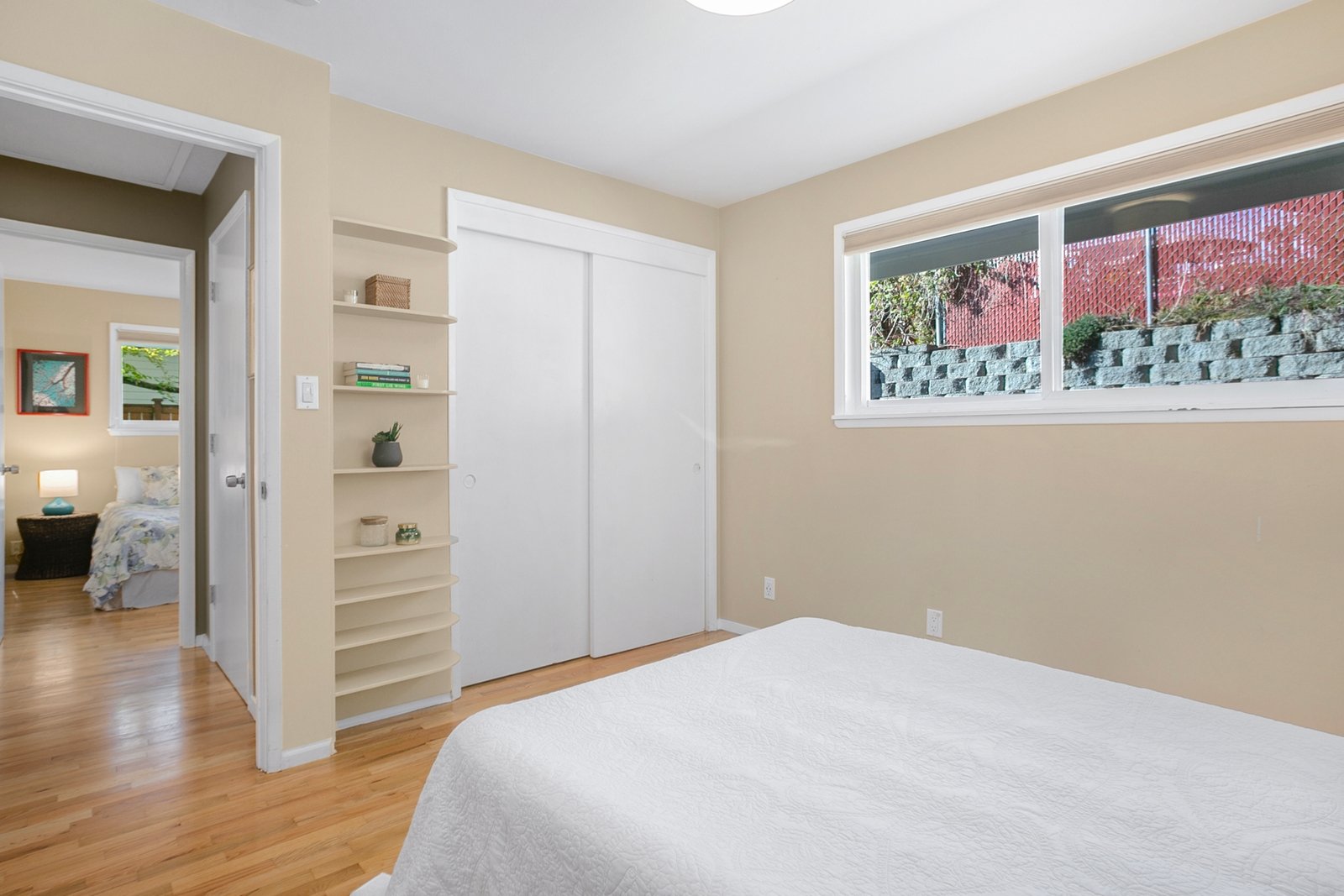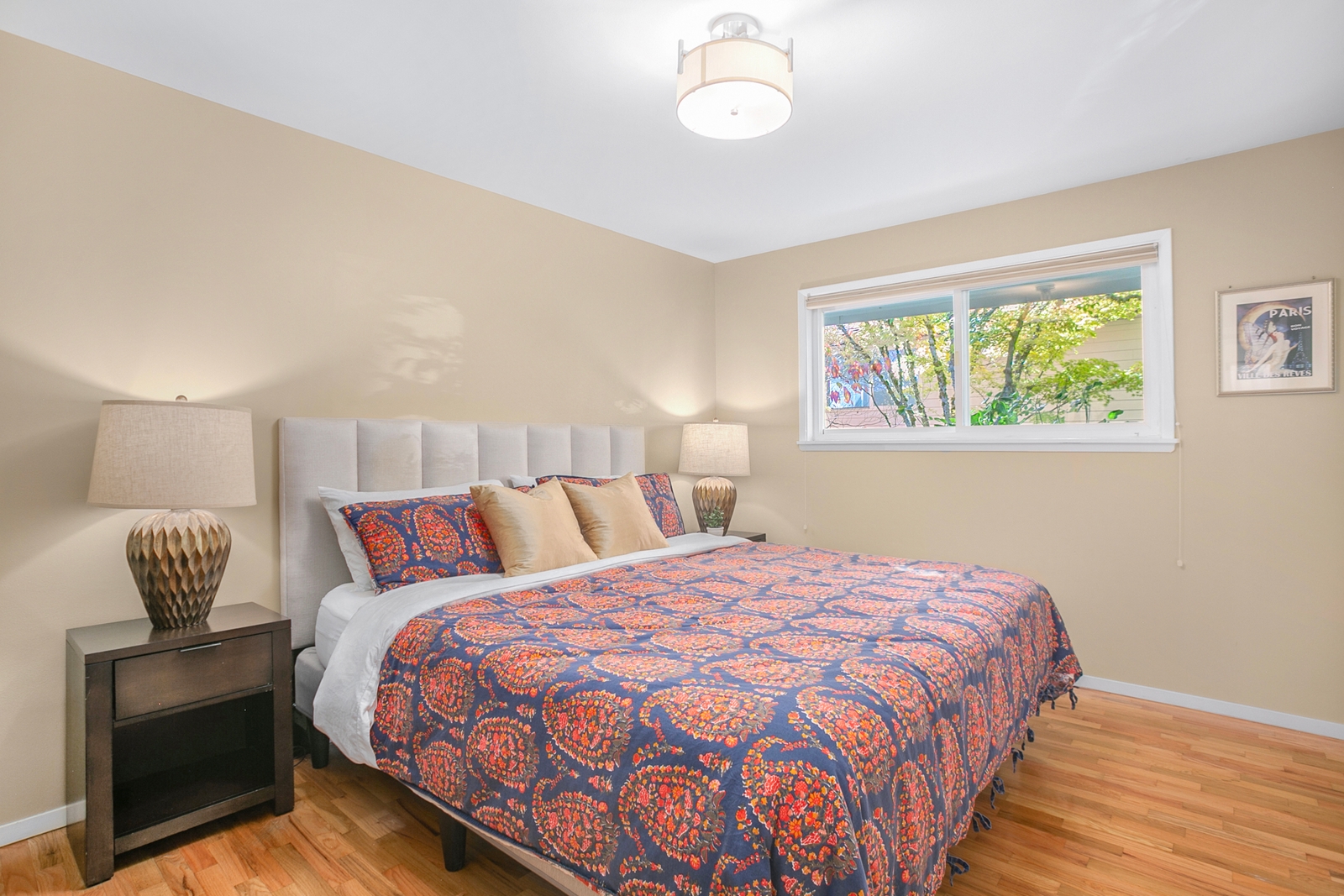 Charming, spacious and private mid-century home. Large picture windows in the living and dining rooms let in great light and look out at trees in the front yard. 3 bedrooms on the main and an office/non-conforming bedroom with a closet downstairs. Kitchen has space for a 2nd eating area. Spacious family room on the lower level has room for a sitting/tv area and more. Relax on the private front deck or the back patio area. Fenced yard with wide side yard to the south. Storage in the 1-car garage and large storage closet downstairs. Updated electrical with smart outlets, new water main, heat pump for efficient heating and cooling, new carpet on lower level, hardwood floors and 2 fireplaces. Close to coffee shops, bars/restaurants and transit.